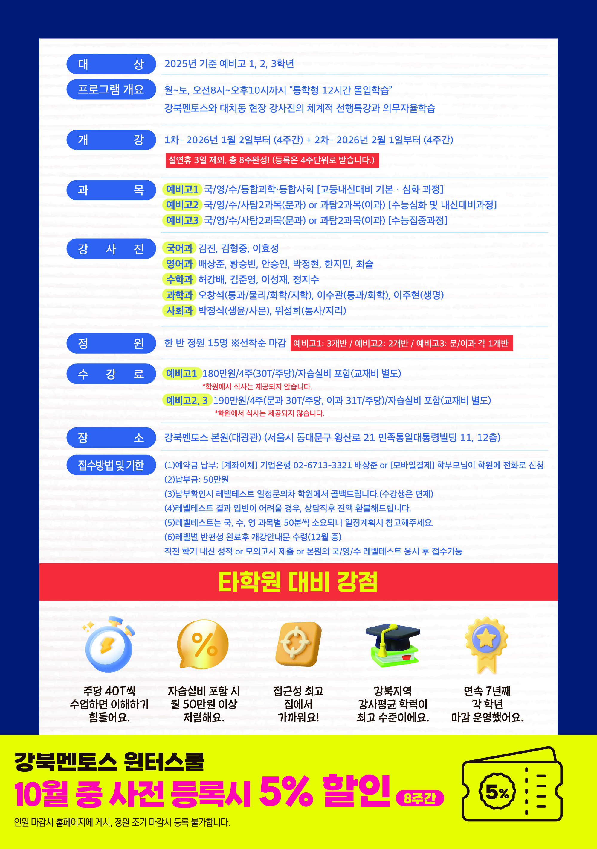 2026 윈터스쿨 예약개시!(10월예약자 8주, 5%할인혜택!!)