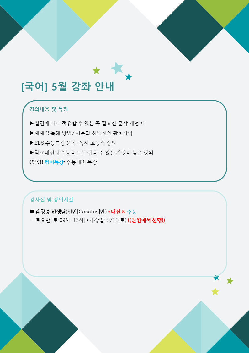[경희고3] 5월 단과 강좌 안내