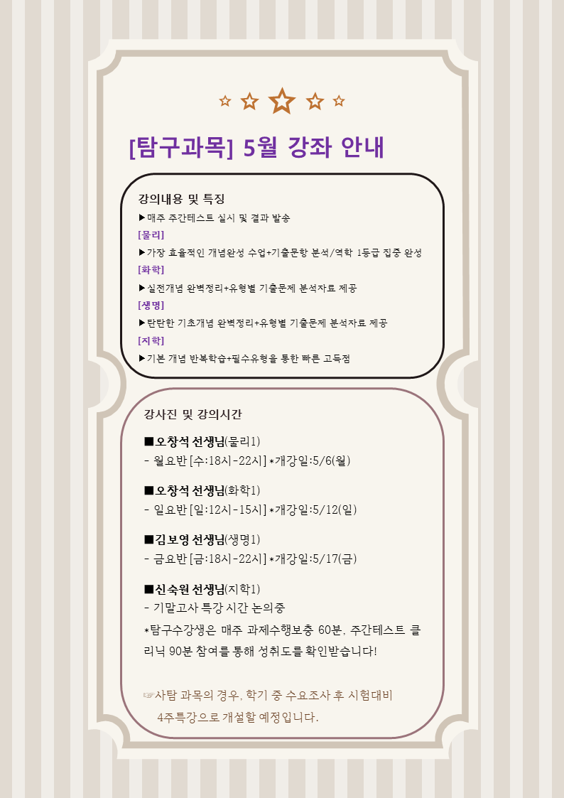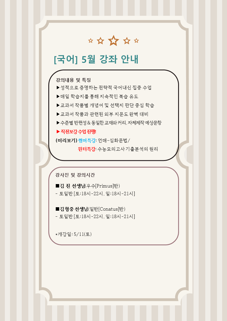 [대광고2] 5월 단과 강좌 안내