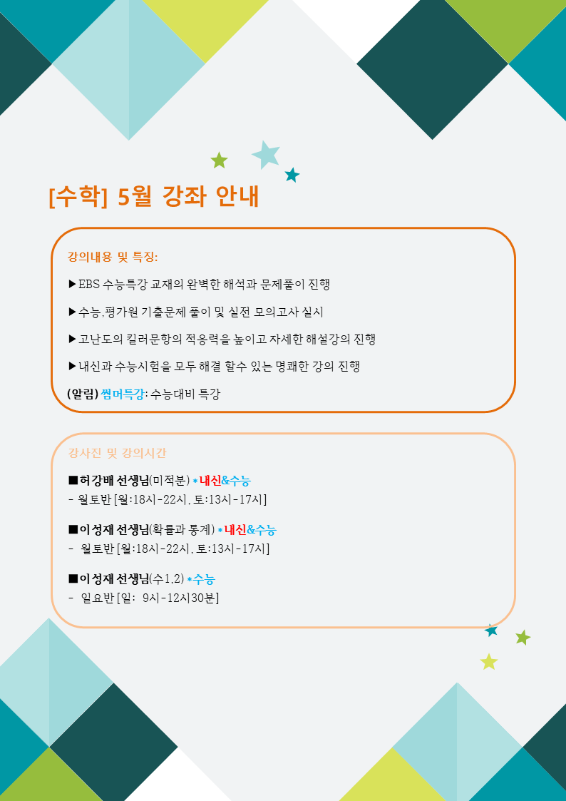 *고3 수능강좌는 학교구분없이 수강가능합니다.